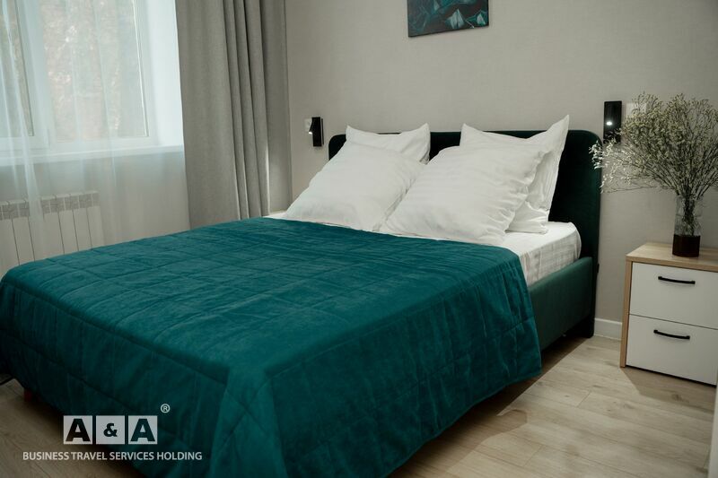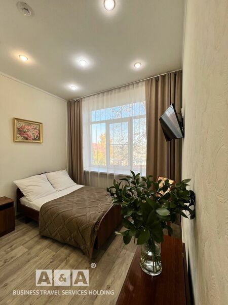 Однокомнатный одноместный Улучшенный номер. В номере находится – современная мебель и сантехника, душевая кабина или ванна, комплект постельного белья, 2 полотенца, шампунь в индивидуальной упаковке, мыло жидкое, халат, тапочки, гель для душа в индивидуальной упаковке, шапочка для душа, набор для чистки зубов в индивидуальной упаковке, расческа, салфетка для обуви, холодильник, эл. чайник, ТВ, Wi-Fi интернет.