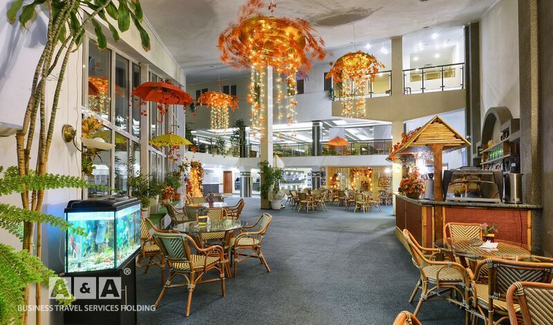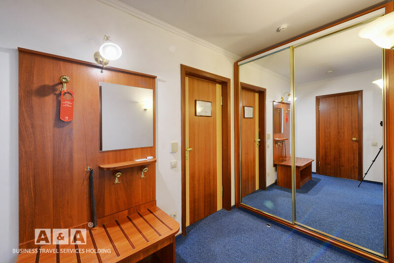 Двуспальная кровать, двуспальный диван, журнальный и письменные столы, шкаф-купе, прикроватные тумбочки, полка для багажа и обуви, телевизор, мини-бар, телефон, кондиционер, проводной интернет - бесплатно.