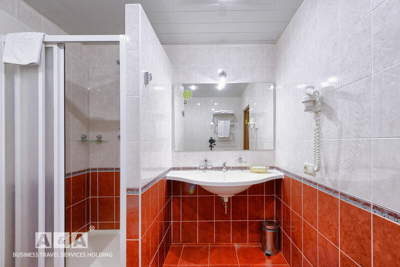 унитаз, биде, душевая кабина (1,3 корпус), умывальник, комплект полотенец, туалетные принадлежности, фен.