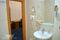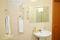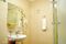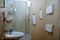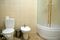 В ванной комнате: душевая кабина, фен, биде, предметы личной гигиены.