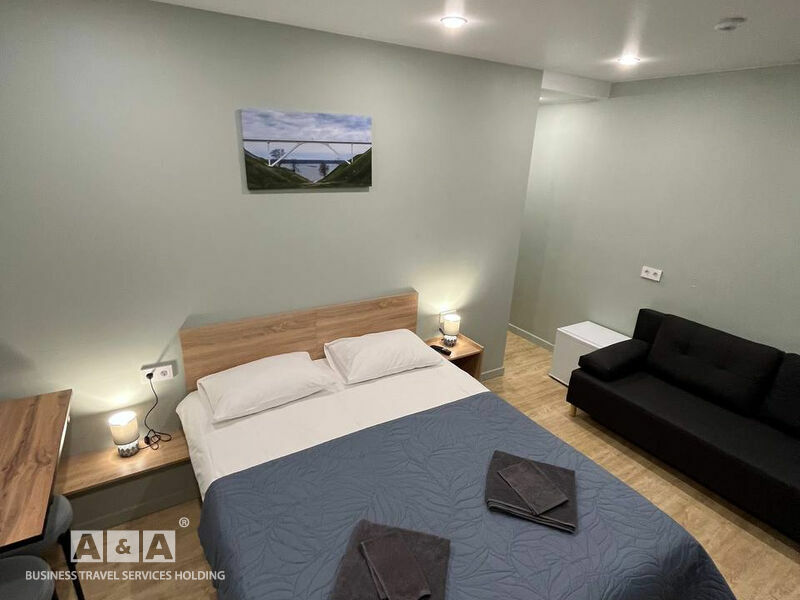 ДВУСПАЛЬНАЯ КРОВАТЬ С ОРТОПЕДИЧЕСКИМ МАТРАСОМ, ДИВАН-КРОВАТЬ, САНУЗЕЛ И ДУШЕВАЯ КАБИНА, ХОЛОДИЛЬНИК, ФЕН, ПЛАЗМЕННЫЙ ТЕЛЕВИЗОР, КОНДИЦИОНЕР, ШКАФ, ПИСЬМЕННЫЙ СТОЛ.