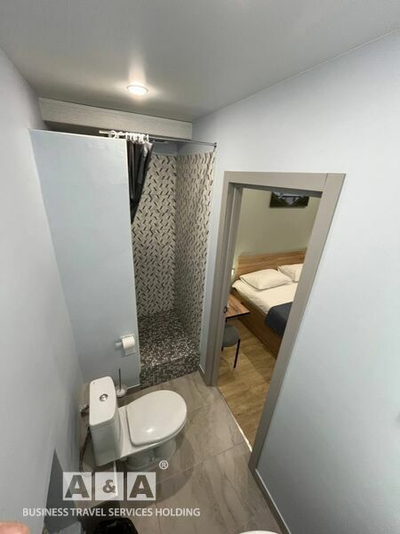 ДВУСПАЛЬНАЯ КРОВАТЬ С ОРТОПЕДИЧЕСКИМ МАТРАСОМ, САНУЗЕЛ И ДУШЕВАЯ КАБИНА, ХОЛОДИЛЬНИК, ФЕН, ПЛАЗМЕННЫЙ ТЕЛЕВИЗОР, КОНДИЦИОНЕР, ШКАФ, ПИСЬМЕННЫЙ СТОЛ.