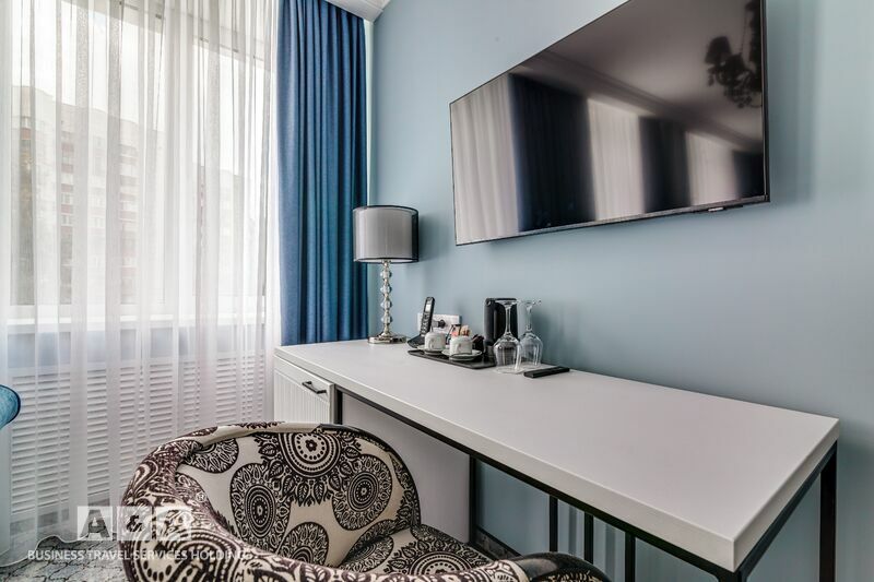 Оснащение номера: душевая кабина, фен, вафельный халат, одноразовые тапочки, ЖК-телевизор, средства индивидуального пользования (мыло, шампунь), кондиционер, двуспальная кровать, шкаф, холодильник, стол, стул. Завтрак "шведский стол" включен в стоимость проживания.