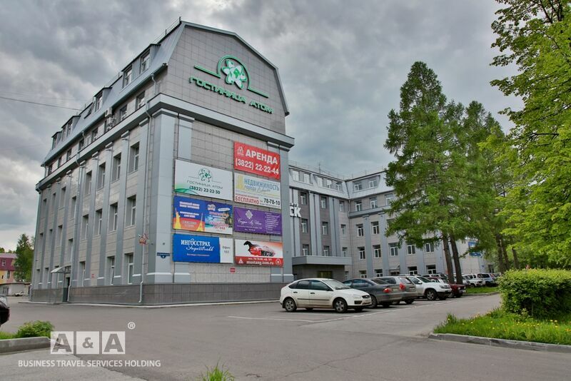 Гостиница "Атом" находится на Коммунистическом проспекте. Рядом несколько автобусных остановок, ДК им. Островского. Недалеко протекает река Томь. На одном проспекте с гостиницей расположены Музыкальный театр, Театр для детей и юношества и театр "Наш Мир". До зоопарка и музеев можно дойти за пятнадцать минут.
