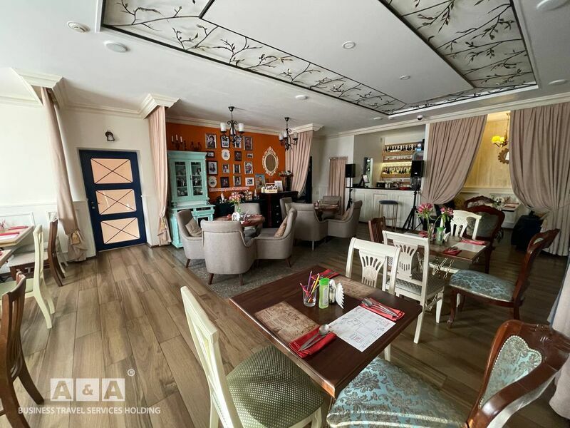 Завтрак можно заказать прямо в номер или спуститься в ресторан. Стоимость завтрака ограничена определенной суммой, в размере 200-300 рублей в зависимости от типа номера, все что свыше, оплачивается сверху, но цены очень демократичные, если конечно не брать алкоголь))) Мы вполне укладывались в сумму, включенную в стоимость завтрака. и конечно, же кушали в ресторане, в нем просто приятно находиться, аппетит улучшается даже от самой атмосферы, которая там царит: приятная спокойная музыка-Шарль Азнавур, улыбчивая официантка по имени Елена, все располагает засидеться там подольше...